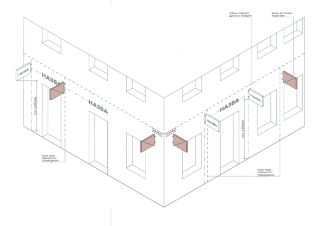 «Положення містить уточнені вимоги щодо вигляду самих вивісок - рекомендації щодо матеріалів, кольорів, шрифтів та композиції елементів. Також ми акцентуємо на приміщеннях з кількома підприємцями, так званих комплексних проєктах. В таких випадках вивіски мають бути запроєктовані як комплекс, розташовані на одній осі, мати однакові пропорції.