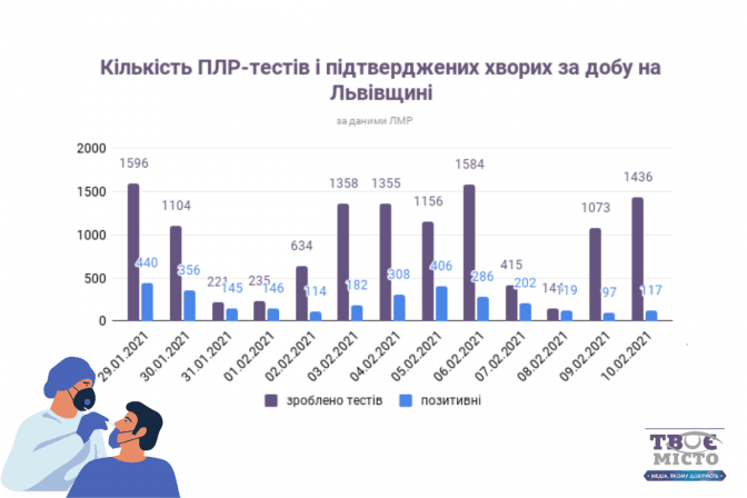 За попередню добу на Львівщині провели 1 436 досліджень на коронавірусну інфекцію, з них 117 виявилися позитивними.