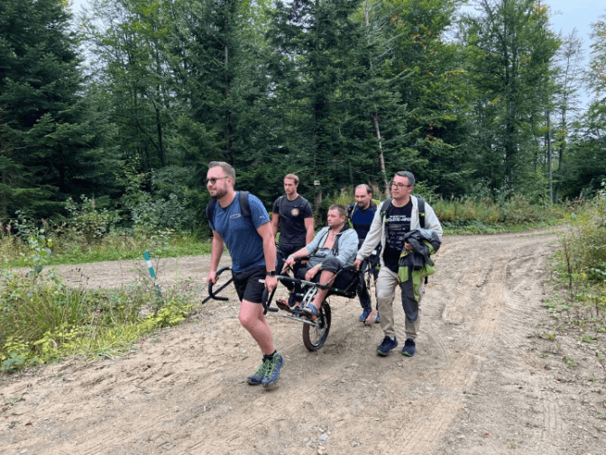Зокрема, Василь Никорак з Тернопільщини, який біля села Нью-Йорк на Донеччині втратив праву нижню кінцівку, частину дороги підіймався за допомогою крісла джульєтка.
