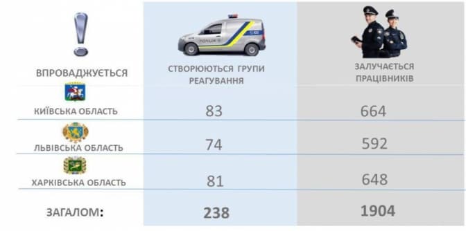 Загалом на Львівщині створять 74 групи реагування патрульної поліції (ГРПП), які нараховуватимуть 592 поліцейських. Львівщина стане другою областю після Київської, де впровадять такий проект. Через тиждень презентація такого ж патруля відбудеться у Харківській області.