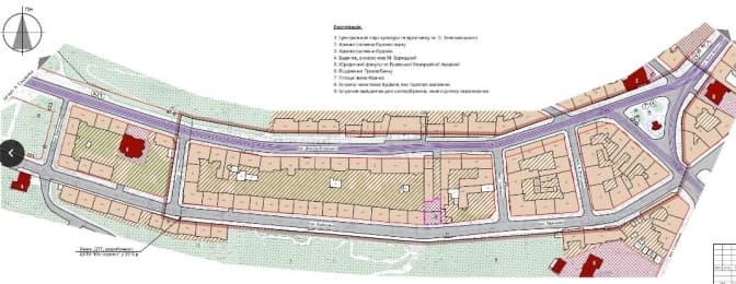 Рожевим обведений будинок, який планують знести під готель