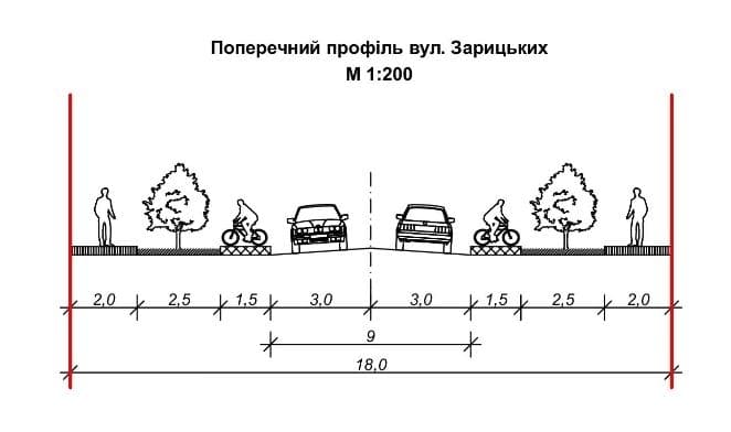 На вулиці Зарицьких та Вітовського пропонують прокласти велодоріжки. Реалізувати ДПТ планують у дві черги: за перші три роки побудувати готель та почати реконструкцію вулиці та площі, а за п’ять – завершити.