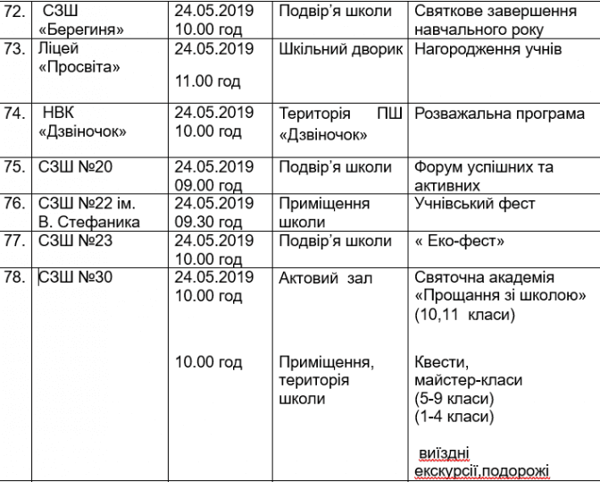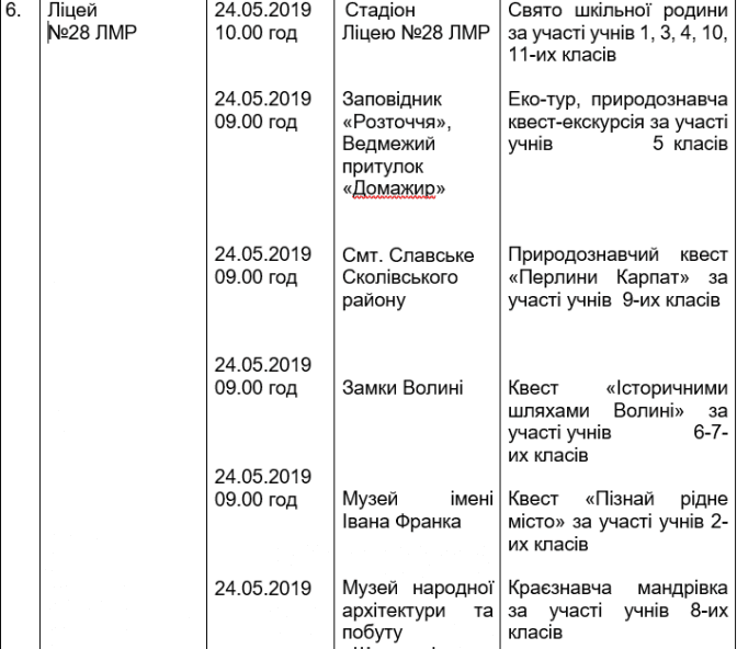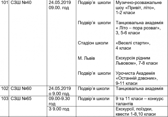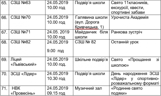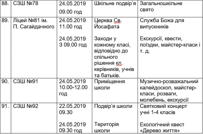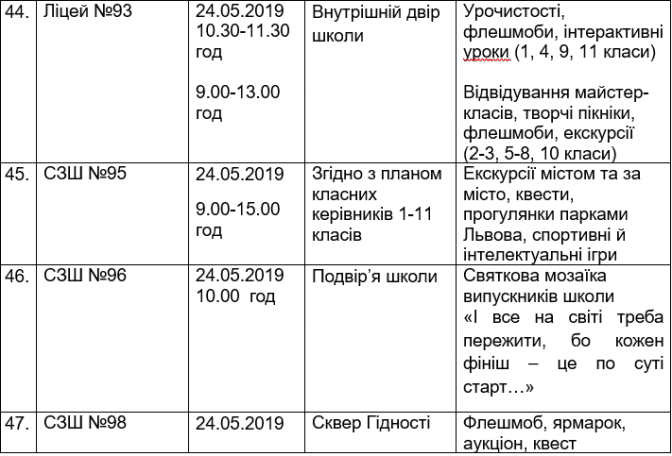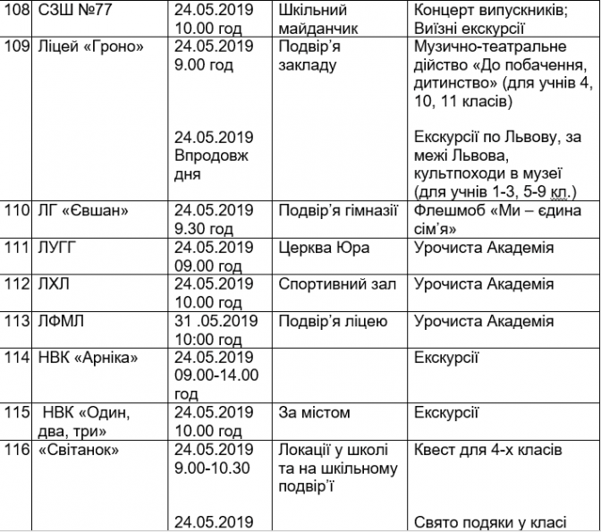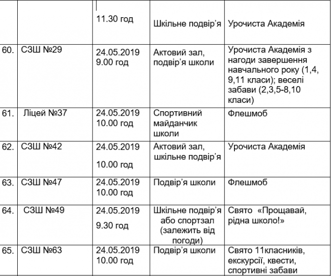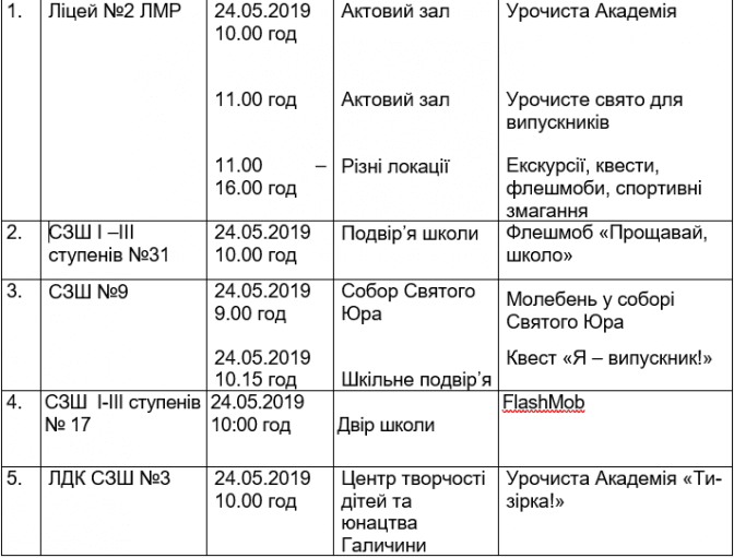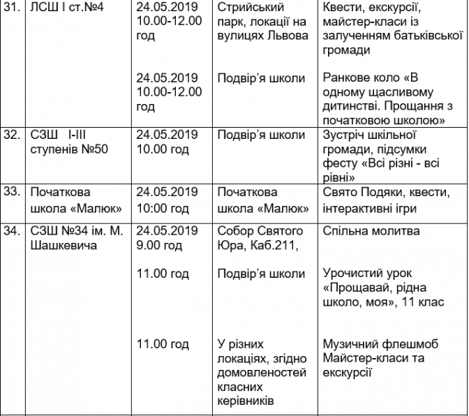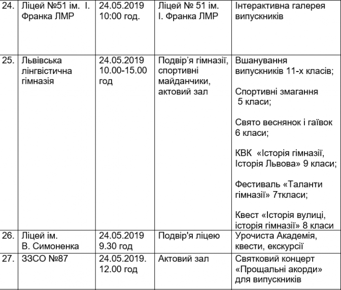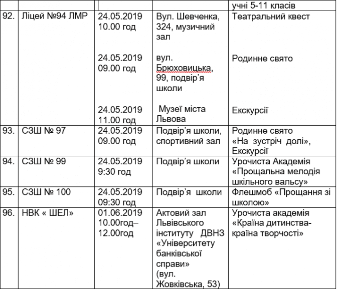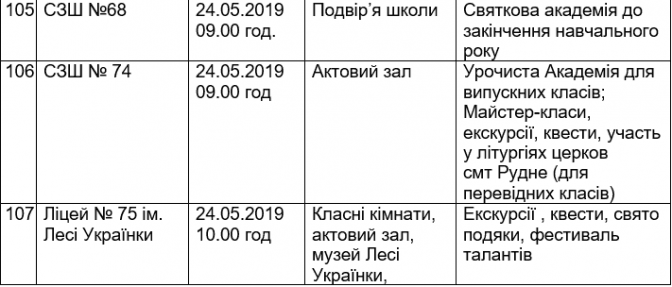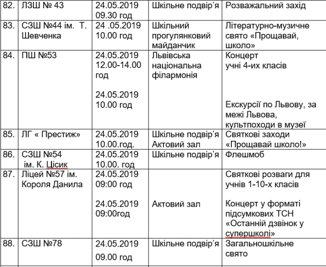 Подаємо повний розклад останніх дзвоників у школах Львова, а також активності, які заплановані закладами освіти у цей день.
