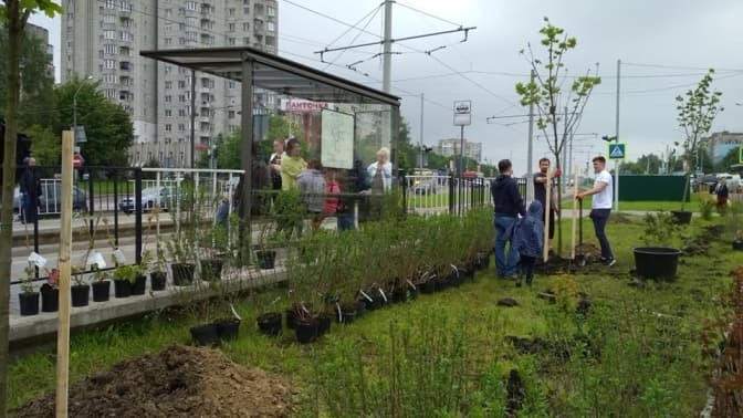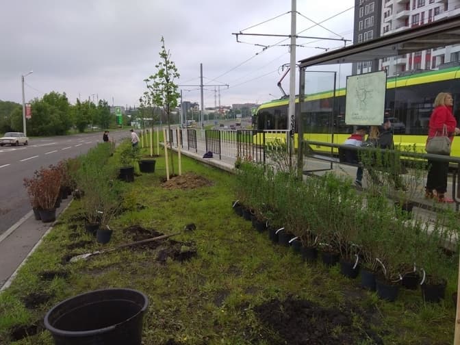 Уздовж трамвайної колії на Сихів поблизу зупинки «Шувар» висаджують кущі та дерева. До цієї акції в межах Майстерні міста могли долучитись всі охочі. Відповідні фото на своїй сторінці у Facebook опублікував дизайнер ЛКП «Інститут просторового розвитку» Олександр Шутюк.