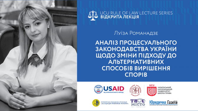 У Львові відбудеться відкрита лекція членкині Національної асоціації адвокатів України Луїзи Романадзе, під час якої обговорять, яке місце в українському законодавстві займають альтернативні засоби вирішення спорів та чи часто українці звертаються до альтернативних способів.