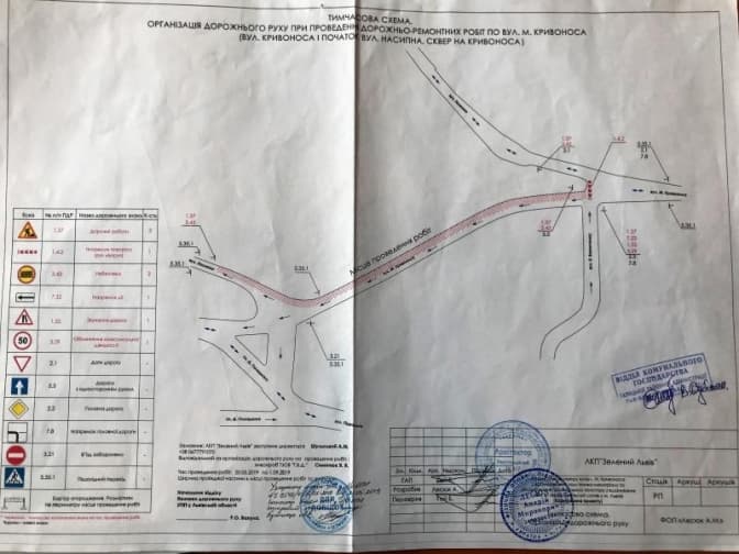 До 1 вересня перекриють вулицю Кривоноса (на від вулиці Замкової до вулиці Насипної) через демонтаж наявної і будівництво нової підпірної стінки. Роботи виконує ТзОВ «Т.В.Д.».
