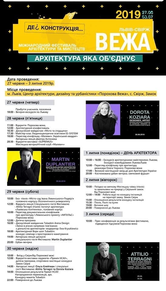 Цього тижня у Львові стартує другий Міжнародний фестиваль української архітектури «ВЕЖА: Де?Конструкція», який присвятять пошуку конструктивного діалогу поміж мистецтвами.