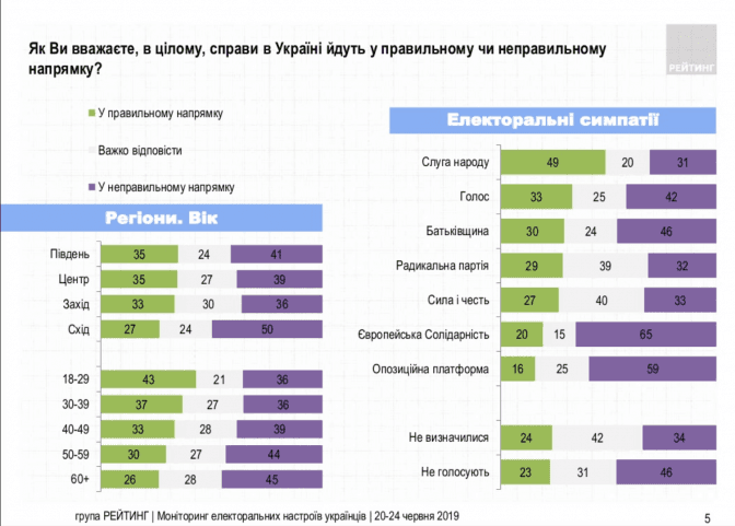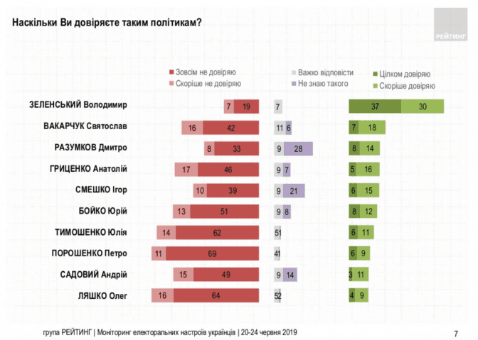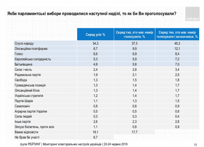 Соціологічна група «Рейтинг» опублікувала результати чергового дослідження електоральних настроїв, яке проводили з 20 по 24 червня.