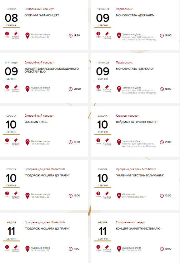 Події фестивалю є як безкоштовні, так і платні. А також діють окремі знижки для студентів, учасників бойових дій, пенсіонерів і людей з інвалідністю. Придбати квитки можна на сайті LvivMozArt за посиланням.