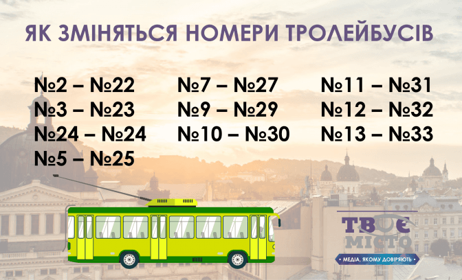 Як пояснював раніше директор департаменту ЖКГ ЛМР Андрій Білий, номери повинні мати маршрути, а не види транспорту. Тому до нинішніх номерів тролейбусних маршрутів додадуть число 20. Тож із 1 липня номери змінять таким чином: