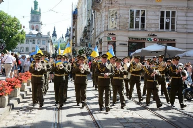 Сьогодні, 28 червня, в Україні відзначають 23-тю річницю Конституції. У Львові з цієї нагоди відбулись урочистості за участі військового оркестру, а також флешмоб і квест. Про це повідомляє прес-служба ЛМР.