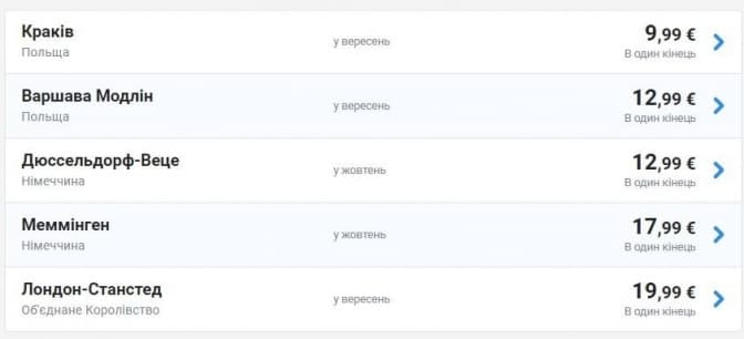 Зі Львова за 10 євро можна полетіти до Кракова, за 13 євро – до Дюссельдорфа та Варшави, за 18 євро – до Меммінгена, а за 20 євро – до Лондона. Придбати квитки можна на сайті авіаперевізника.