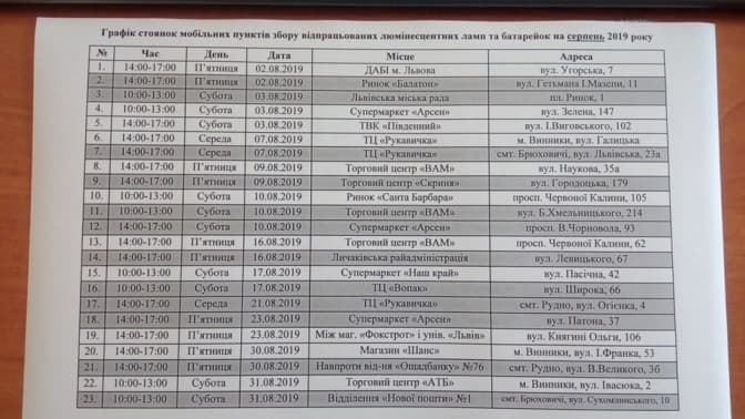 Де у Львові здати використані батарейки та старі лампи. Графік зупинок екобуса в серпні
