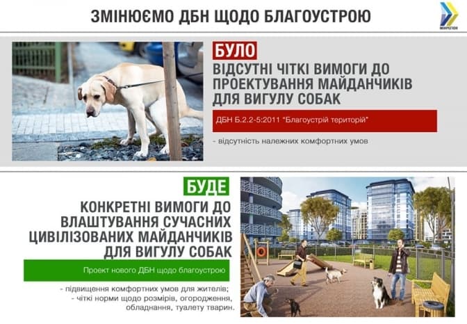 «Сьогодні у чинних вимогах ДБН щодо благоустрою є лише деякі окремі вимоги, як влаштовувати майданчики для вигулу собак та інших тварин. У підсумку на практиці їх проектують, як хто вважає за потрібним. Порядок має бути у всьому. Тому ми хочемо суттєво переглянути ці вимоги, більш конкретизувати їх», - йдеться у повідомленні.