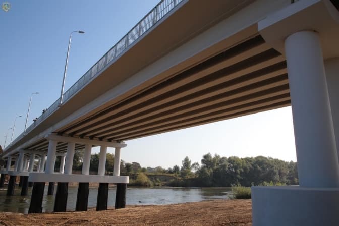 Довжина нового мостового переходу становить 181,05 м. Влаштовано по одній смузі руху в кожному напрямку, загальна ширина проїзної частини становить 7,5 м. Конструкція проїзної частини на мості складається з монолітної накладної плити, гідроізоляції, нижнього та верхнього шарів асфальтобетонного покриття. Також влаштовані підходи до мосту довжиною 1,326 км та тротуари з тонкошаровим зносостійким покриттям, а на під’їзних дорогах — конструктивні шари асфальтобетонного покриття з попереднім посиленням основи. Окрім того, освітлено міст та підходи до мосту довжиною 0,6 км, а для забезпечення безпеки дорожнього руху та орієнтування водіїв встановлені необхідні дорожні знаки, металеве бар’єрне та перильне огородження, напрямні стовпчики та нанесено горизонтальну дорожню розмітку. Загальна вартість об’єкту — 229,4 млн грн, фінансування здійснювалось з державного бюджету.