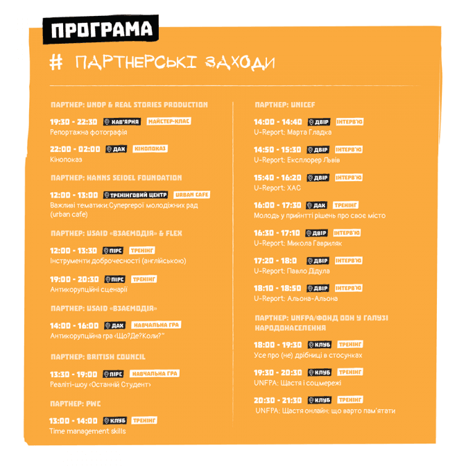 Участь у заходах безкоштовна, але за попередньою реєстраціює, яка тривала до 5 серпня. Усі події відбуватимуться на території FestRepublic, що на вул. Старознесенській. Від Порохової вежі до клубу що 40 хв. курсуватимуть безкоштовні експрес-автобуси.