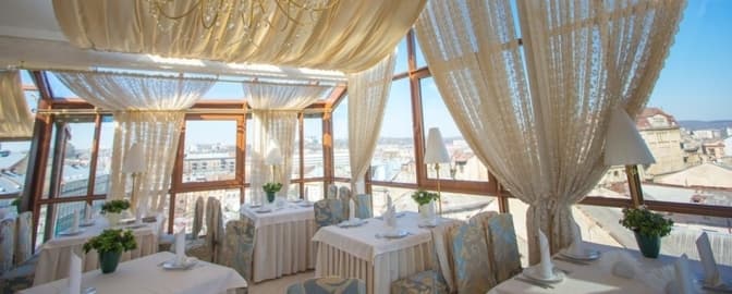 Готель «Панорама» з однойменною назвою ресторану дає можливість краєвидом центральної частини Львова за горнятком смачної кави чи бізнес-ланчем.