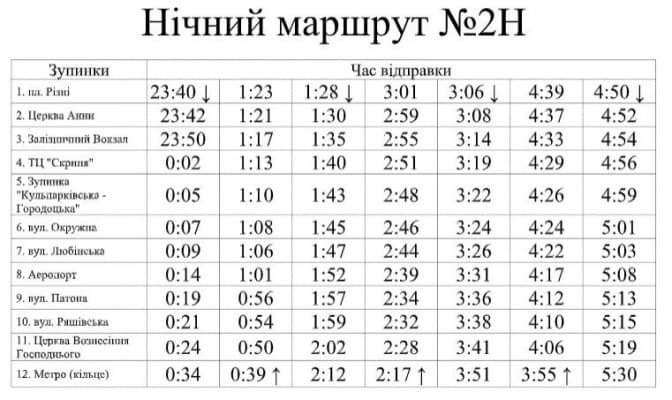 Цієї ночі автобус №2Н почав курсувати від пл. Різні до Городоцької – Кільцевої та заїжджатиме до аеропорту. Про це повідомляє пресслужба ЛК «АТП-1».