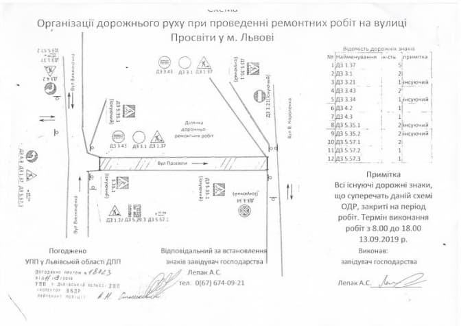 Роботи виконує ліцей «Просвіта». Об’їзд виконуватимуть відповідно до розробленої тимчасової схеми організації дорожнього руху.