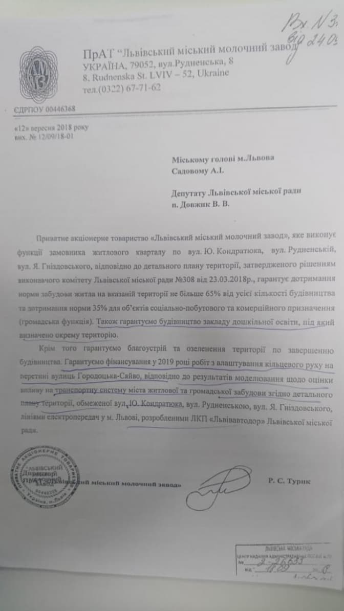 У вересні минулого року замовник будівництва ПрАТ «Львівський міський молочний завод» написав до міської ради гарантійний лист, за яким зобов’язувався профінансувати у 2019 році облаштування кільцевої розв’язки на перехресті, а тоді розпочати безпосереднє будівництво.