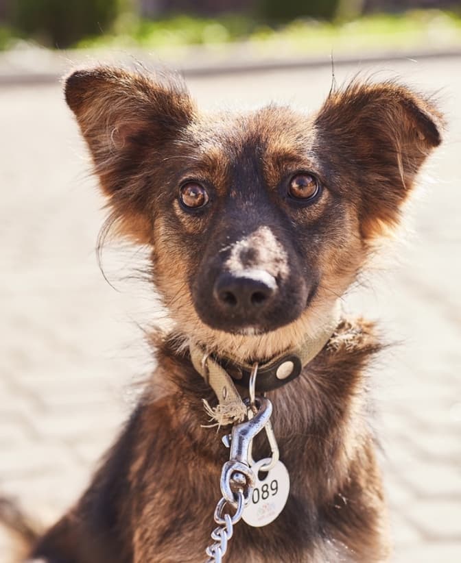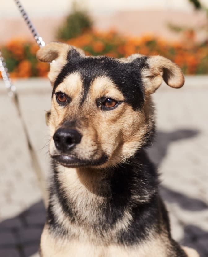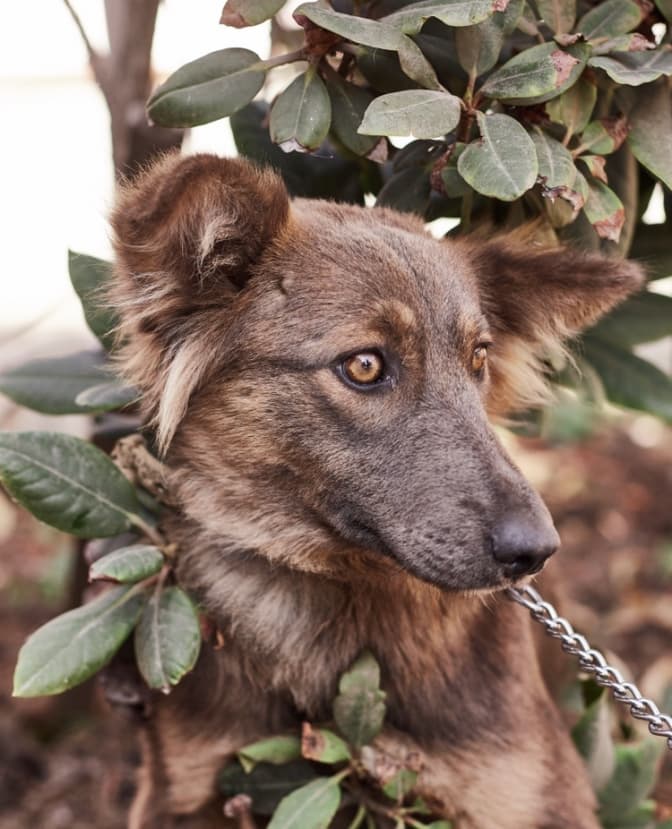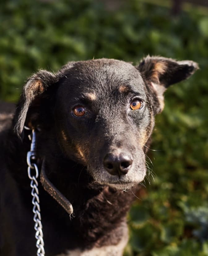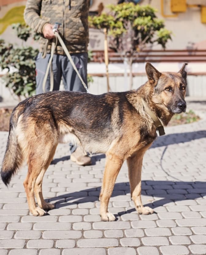 Доні – метис німецької вівчарки. Добре знає повідок та має здібності до навчання.
