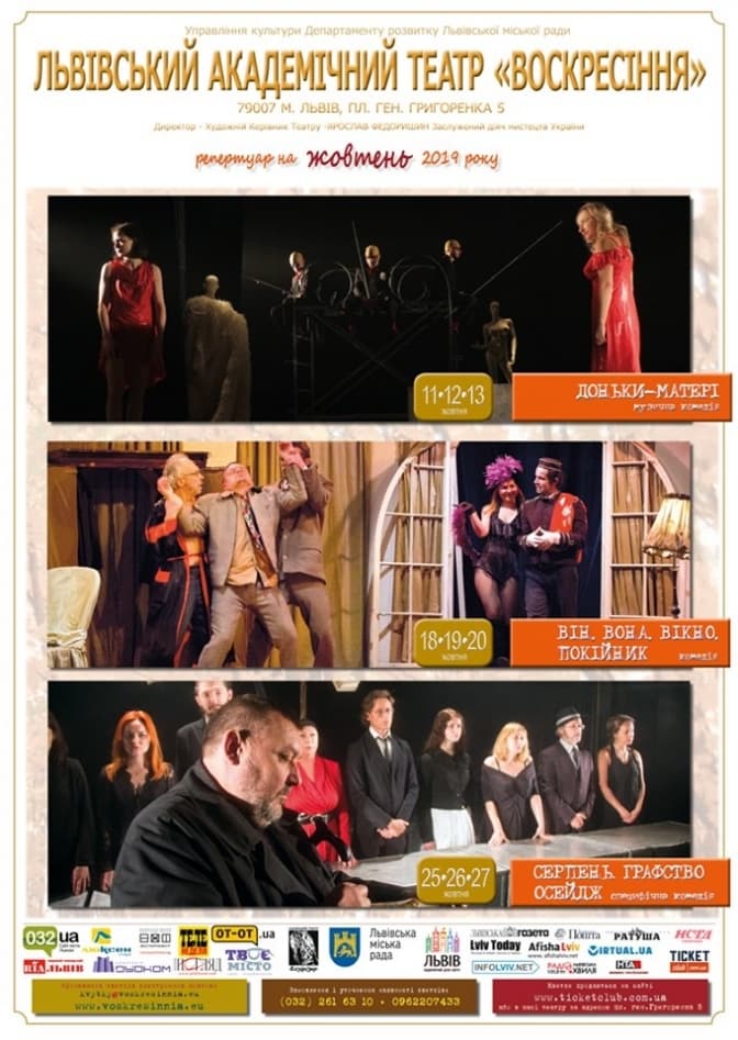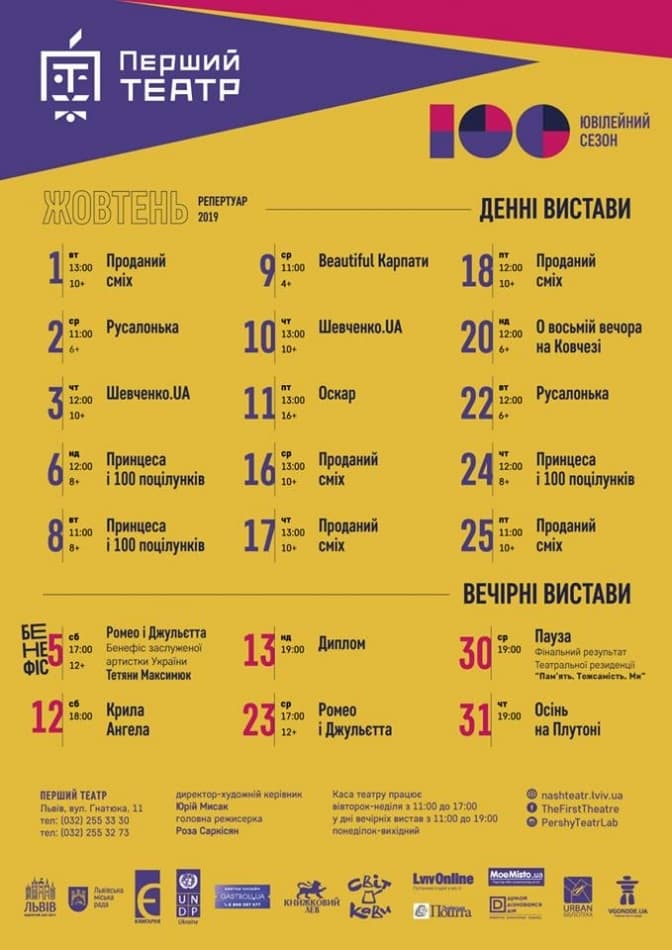 Tvoemisto.tv пропонує переглянути афіші театрів Львова, які оприлюднили свої репертуари на жовтень.