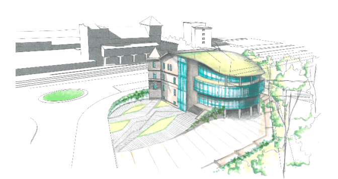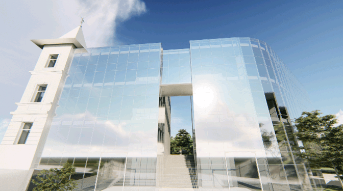 Архітектор Андрій Лесюк презентував проект реконструкції будинку, за яким він пропонує зберегти нинішню будівлю, натомість навколо неї збудувати офіси у вигляді рамкового обрамлення.