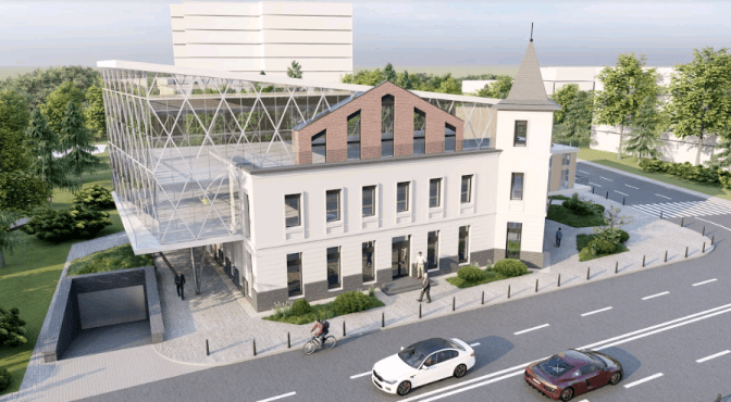 Архітектор Михайло Кузьмич також пропонує зберегти нижній фасад будівлі, зокрема повністю зі сторони вулиці Сахарова та частково – з Горбачевського. Натомість добудувати склянний корпус із можливістю входу з обох вулиць, із терасами та підземним паркінгом.