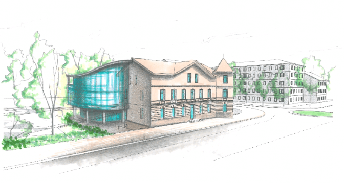 «Значення для будівлі мають лише фасади, тож ми їх зберігаємо та добудовуєо фонофу споруду», – кажуть студенти-архітектори під керівництвом Юрія Джигіля.