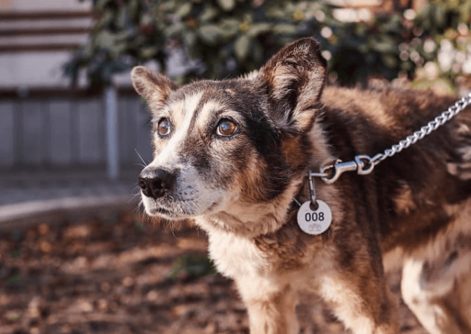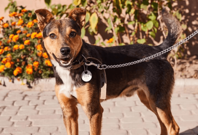 Діна – молода метиска вівчарки. Наразі з нею займається наш кінолог, адже чотирилапа налякана та боїться будь-яких рухів, що свідчить про те, що її скоріш за все ображали або били. Діна швидко навчається та соціалізовується, тому дуже скоро вона зможе переїхати у нову люблячу родину