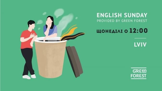 Щонеділі тут можна практикувати розмовну англійську, знайомитися з класними людьми та спілкуватися за чашкою ранкової кави. Проводити зустрічі English Sunday будуть досвідчені викладачі Green Forest.