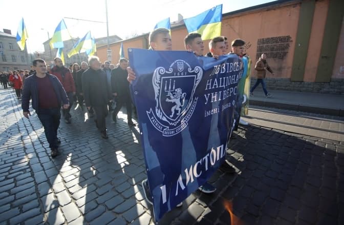 Студентська молодь Львова пройшли пішою ходою від ЛНУ імені Івана Франка до Меморіалу Українським Січовим Стрільцям на Янівському кладовищі, де вшанували пам’ять борців за волю України.