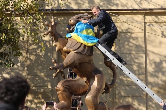 До ходи долучились освітяни, громадські активісти та охочі львів’яни. Загалом у ході взяли участь близько трьох тисяч людей. Після цього, найбільшого лева Львова, який торік встановили на перехресті вулиць Городоцької та Бенедиктовича, одягнули у національний стяг.