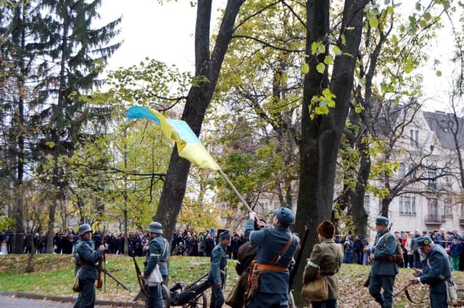 Учора, 3 листопада, у Львові в сквері «На валах» до 101-ї річниці проголошення ЗУНР відтворили «Бої за Львів». Про це повідомляє пресслужба ЛОДА.