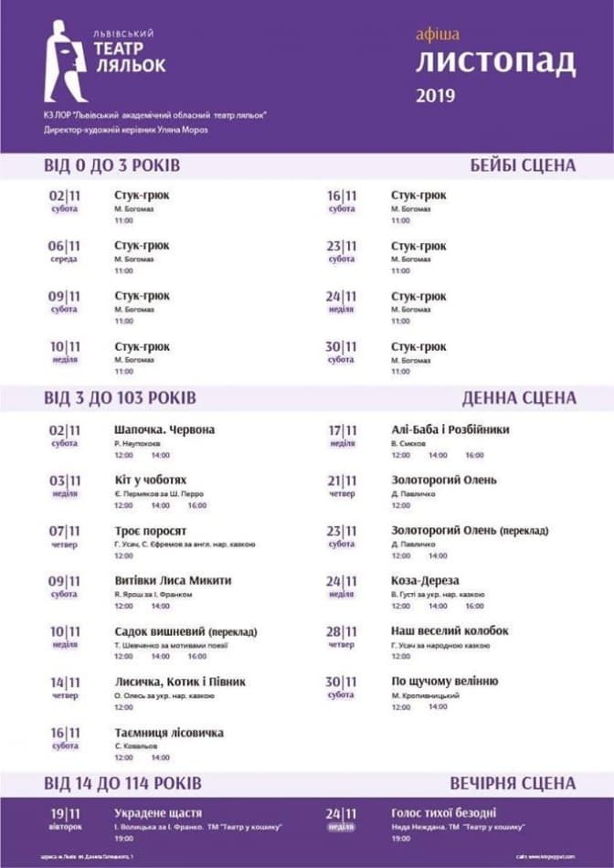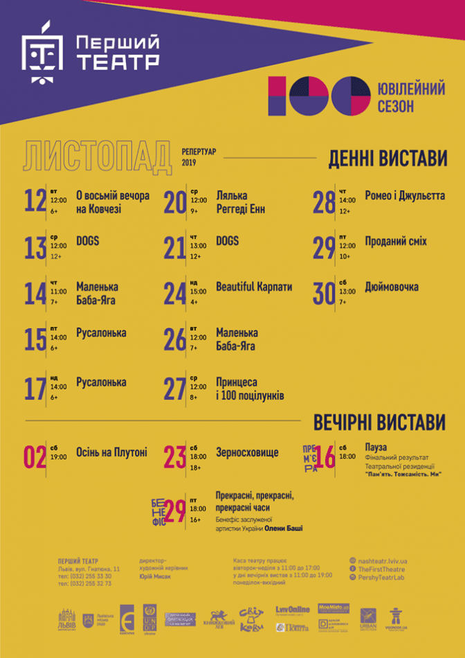 Tvoemisto.tv пропонує переглянути афіші театрів Львова, які оприлюднили свої репертуари на листопад.