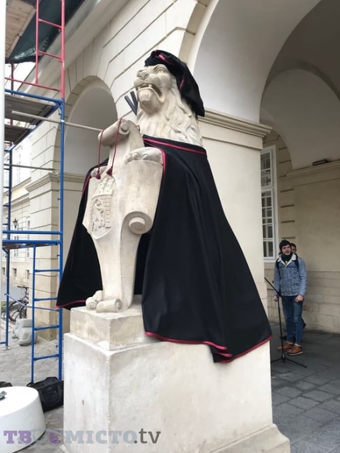 Сьогодні, 18 листопада, у Львові левів на площі Ринок з нагоди міжнародного Дня студентів одягнули у мантії. Про це повідомляє кореспондент Tvoemisto.tv.