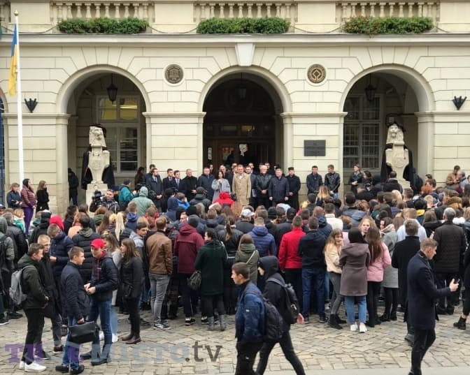 Окрім того, студенти на площі Ринок разом виконали свій гімн.