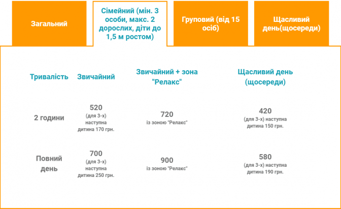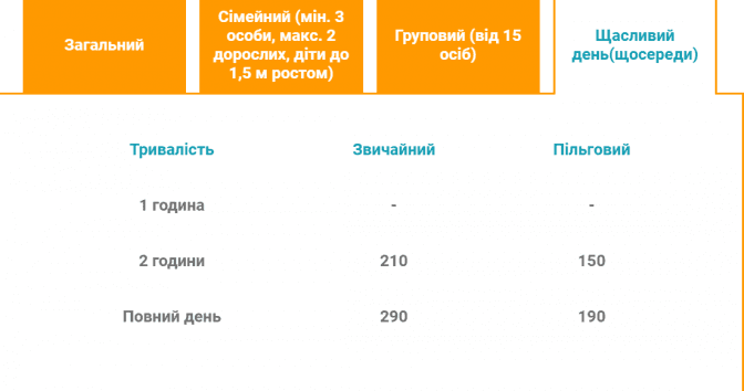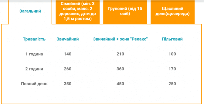 Також дітям до 1 м ростом – вхід безкоштовний. Кожна понадлімітна хвилина коштуватиме 2 гривні.