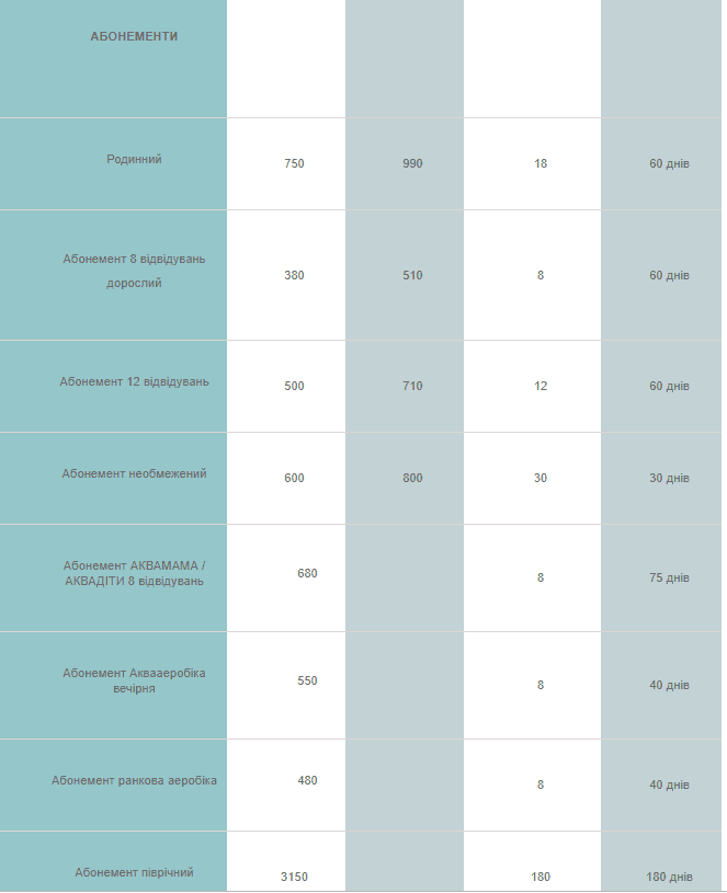 - разовий абонемент за наявності студентського квитка або посвідчення аспіранта чи працівника – 30 грн;