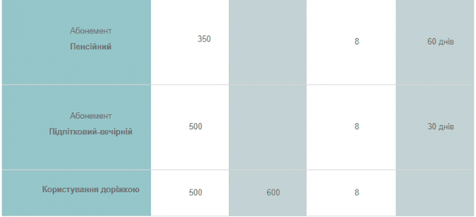 - місячний абонемент за наявності студентського квитка або посвідчення аспіранта чи працівника – 240 грн;