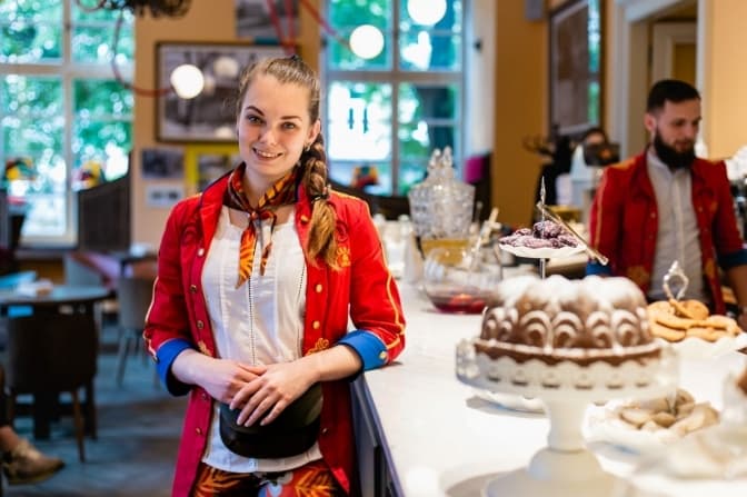 Це кав'ярня з великим вибором солодощів – до кольору, до вибору. І хоча основний продукт меню – найкраще і найсвіжіше у світі тістечко «Леополіс», тут є також сніданкові пропозиції, які можна замовляти впродовж усього дня – до самої ночі. Сніданки називають «панські вежі». А ще у меню є салати, суп, риба. Ну і рекомендуємо спробувати морозиво – воно тут крафтове – від Західноукраїнської кооперативи молока.
