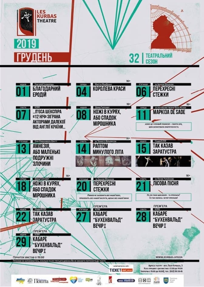 13.12 (п'ятниця) 18:00 – «Горизонт 200» 16+ // Спільно з Drama.ua. Постдокументальна вистава. Тривалість – 3 год. 30 хв. із антрактом.