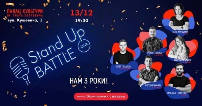 STAND UP Battle club запрошує відсвяткувати третю річниці від першого СТЕНДАП БАТЛу у Львові. Ми хочемо це зробити у новій цікавій атмосфері на новій локації.
