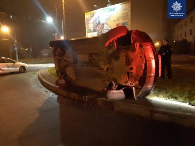 Далі він сів у авто та почав утікати від патрульних. Його наздогнали на перетині проспекту Червоної Калини та вулиці Скрипника, де він наїхав на бордюр і перекинувся. Цього разу він отримав ще три протоколи: за не виконання вимог про зупинку, за ДТП та керування в стані алкогольного сп’яніння. Водій викликав евакуатор, а сам пішов пішки додому.