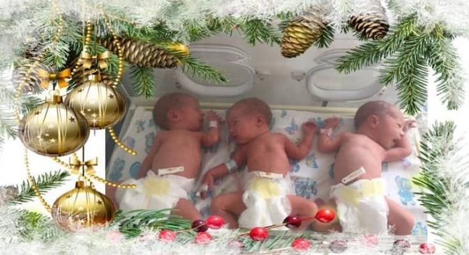 Це три дівчинки. Перша дівчинка народилась з вагою 2240 грам, дві інші – з вагою 2200 грам.