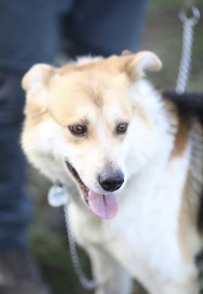Метиска лайки, схожа на білосніжну вовчицю Білка. На жаль, хвостата красуня має травму лапки, бо постраждала від вуличного життя. Найкраще Білці житиметься на просторому подвір‘ї. Для своїх господарів вона стане вірним другом.
