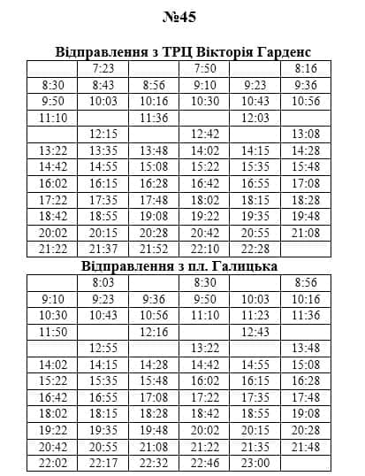 1 січня 2020 року автобусні маршрути 1А, 3А, 4А, 9, 10, 16, 18, 19, 40, 45, 46 курсуватимуть за зміненими графіками. Про це повідомляють на сторінці Львівського комунального АТП-1 на Фейсбуку.