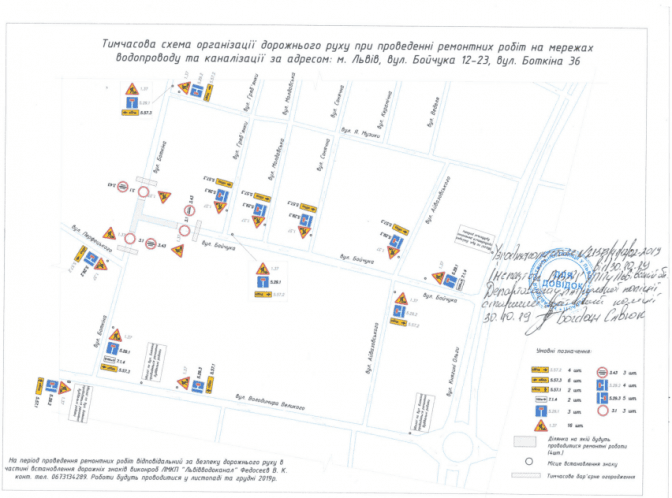 Через це 22 січня по 30 квітня перекриють рух транспорту на перехресті вул. Бойчука – вул. Боткіна. Роботи виконує ЛМКП «Львівводоканал». Об’їзд перехрестя відбуватиметься відповідно до тимчасової схеми організації дорожнього руху.