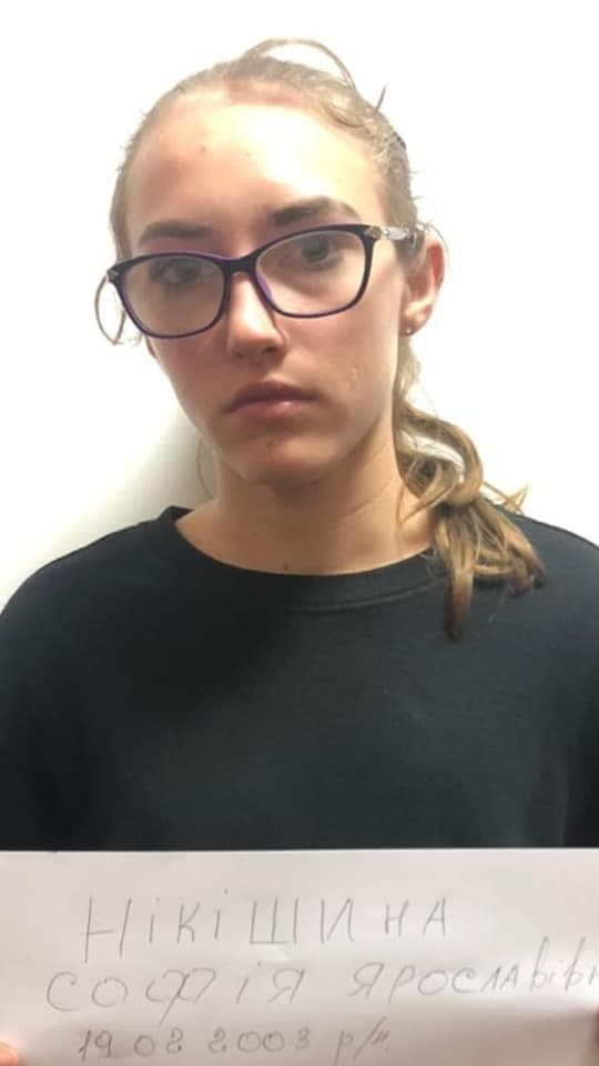 Софія Нікішина була одягнена в чорну довгу куртку, чорні штани, чорні кросівки, ходить в окулярах, має зріст 160 см, худорлявої тілобудови.