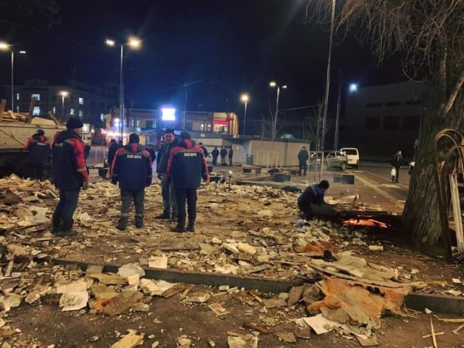 На площі Двірцевій, 1 у Львові демонтували МАФ. У міськраді МАФ називають незаконним і кажуть, що судяться з власником кілька років.